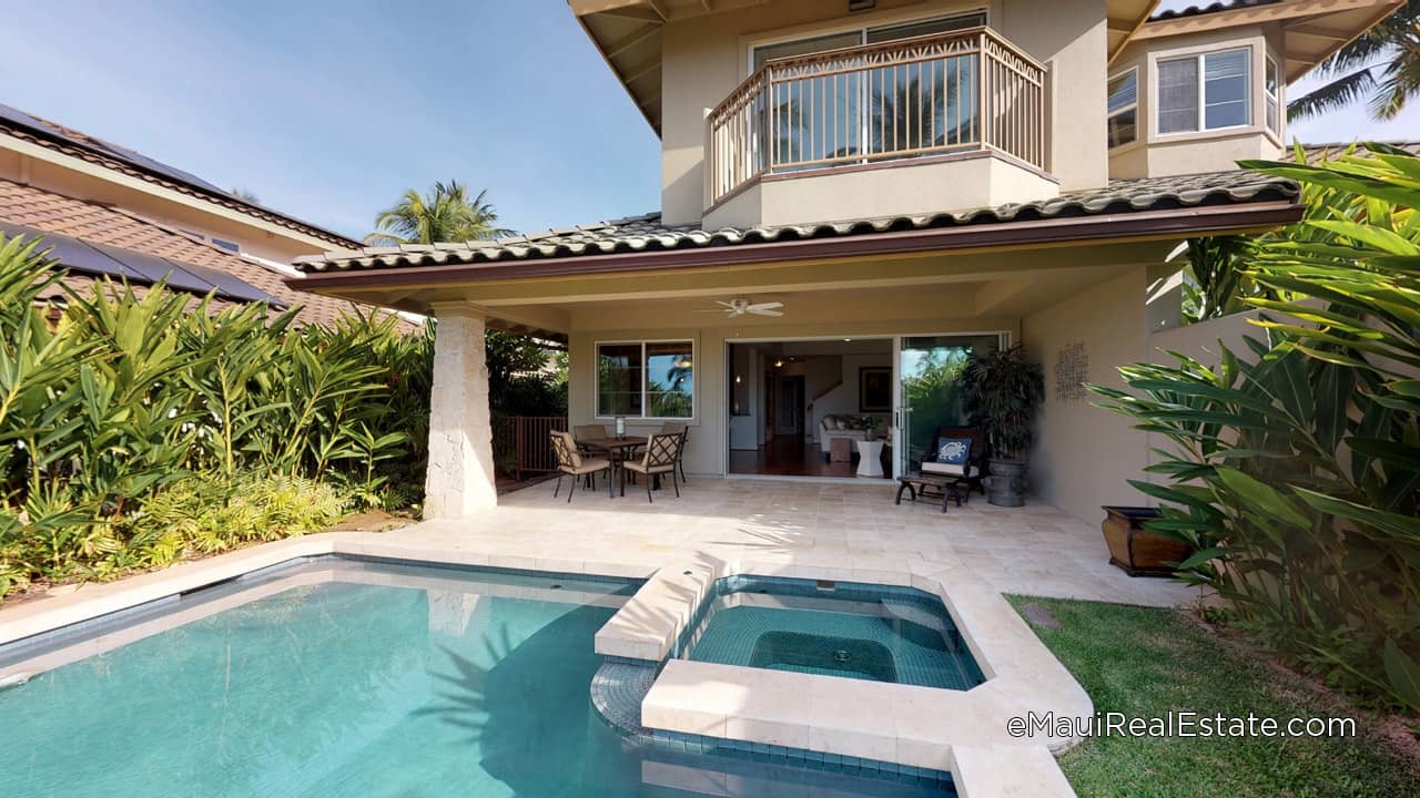 Built out in 2007, Kai Malu is one of Wailea’s newest and most highly sought after gated communities. The neighborhood consists of 75 duplexes, with 150 residential style homes in total. The entire property sits on approximately 25 acres, located right in the heart of the Old Wailea Blue Golf Corse. The 6th, 7th, 11th, 12th, 13th, and 14th holes directly surround this beautiful property. Due to the vastness of the neighborhood, views change dramatically from townhome to townhome. There are 45- 3 bedroom/2.5 bath units which consist of 1796 sq. ft, and 105- 3 bedroom/2.5 bath units, which consist of 1852 interior sq. ft. Approximately 1/3 of the townhomes feature a “reverse floor plan” with the Master Bedroom incorporated of the first story of the home. Short-term vacation rentals are not permitted, so more long-term Maui residents live at Kai Malu. Pets are allowed on property.