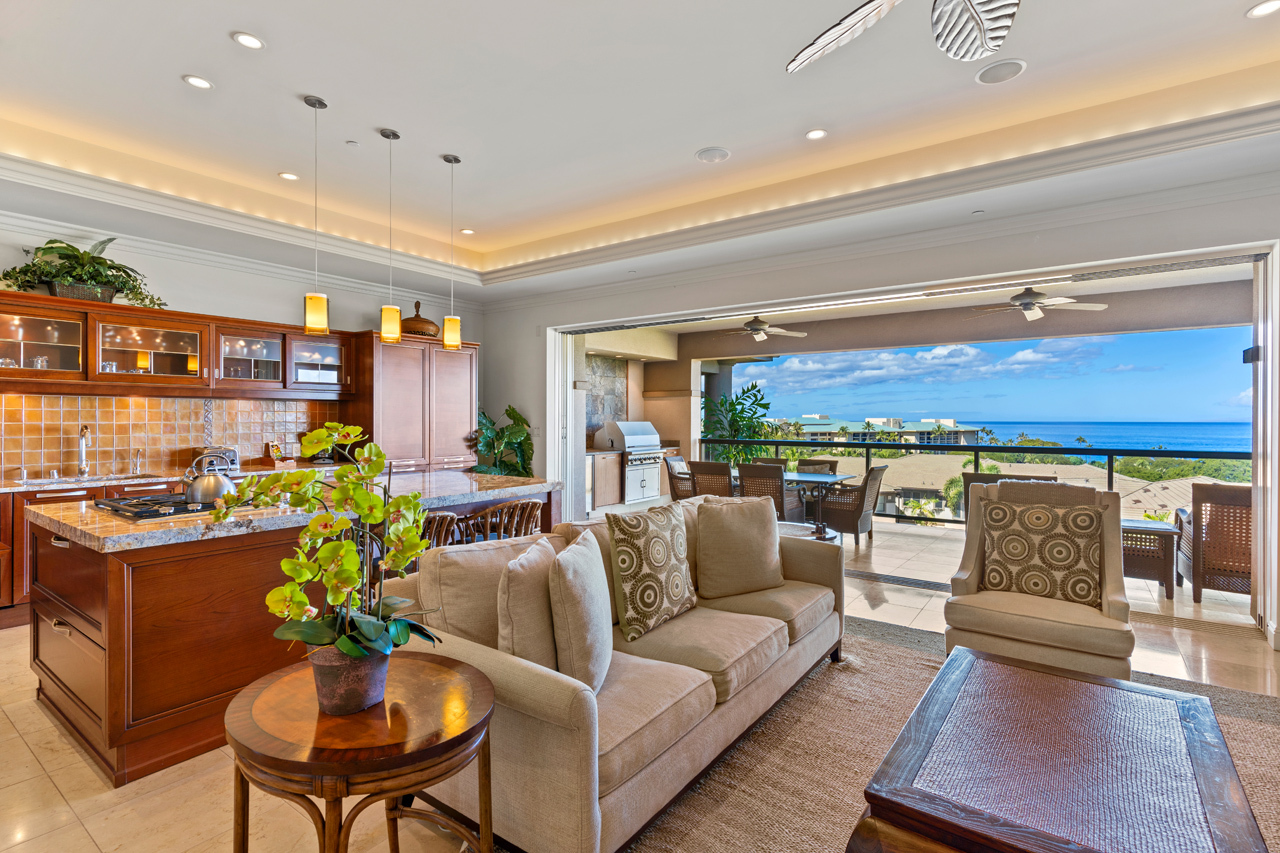 Kitchen with ocean views